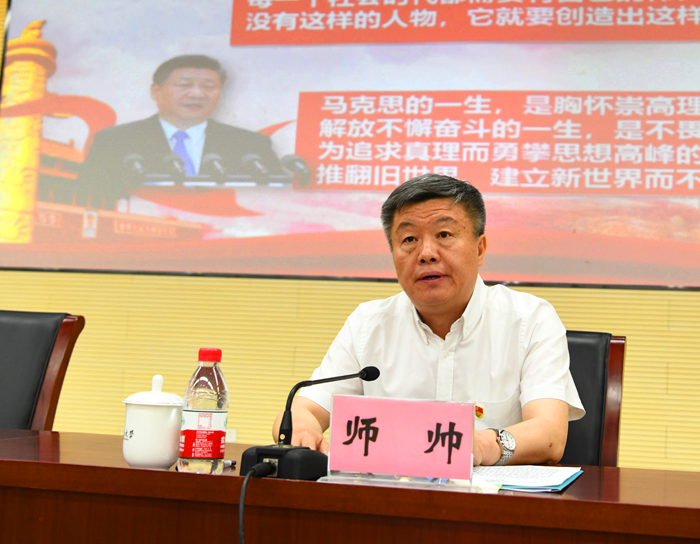 师帅书记以《保持鲜亮底色把马克思主义在中国特色社会主义大学发扬光大》为授课主题,带领大家走近马克思,感受世纪伟人的崇高境界,要从马克思的信仰境界——坚守初心、忠贞不渝,马克思的治学境界——坚韧不拔、勇攀高峰,马克思的人生境界——胸怀人民、改变世界三层境界来感受马克思为人类解放的崇高理想而不懈奋斗的伟大人生。他鼓励大家学好马克思主义,掌握认识世界改造世界的强大思想武器。首先,要在精读经典著作中寻求真理,用经典涵养正气、淬炼思想、升华境界、指导实践。其次,要在研究时代课题中阐释真理,不断提高运用马克思主义分析和解决实际问题的能力,不断提高运用科学理论指导我们应对重大挑战、抵御重大风险、克服重大阻力、化解重大矛盾、解决重大问题的能力,以更宽广的事视野、更长远的眼光来思考把握未来发展面临的一系列重大问题。要在紧跟世界趋势中实践真理,运用马克思主义为解决人类面临的共同难题贡献中国智慧,提供中国方案。师帅强调,要践行新思想,办好中国特色社会主义一流大学;要用新思想领航,坚持办学正确政治方向;用高标准立德,建设高素质教师队伍;进行全方位树人,形成高水平人才培养体系。