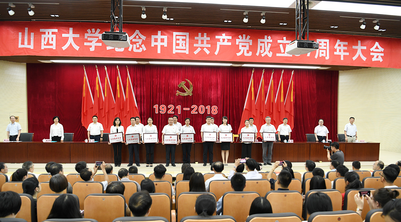 会上,校党委副书记李思殿宣读《中共山西大学委员会关于表彰2017—2018学年度先进基层党组织、优秀共产党员和优秀党务工作者的决定》,分别授予289名共产党员和43个党支部荣誉称号。校领导向受表彰的优秀共产党员和先进党支部代表颁发了奖牌和证书。